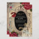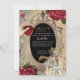 Cette invitation magique et enchanteresse à la fête présente un thème de conte de fées Blanche Neige. Un miroir magique doré est placé à l'avant, avec le texte au centre. Le classique Une fois sur une phrase de conte de fées du temps est imprimé en haut dans une police d'or fantaisiste. Un beau château princesse est placé en bas à droite, et une image de la main de Blanche Neige tenant une pomme venimeuse est imprimée en haut à gauche. Les roses rouges accentuent les limites de l'invitation. L'arrière - plan est un motif de papier parchemin rustique qui ressemble à un vieux livre d'histoires.
