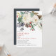 Nos belles invitations florales à la Fête de NOËL débordent d'élégantes fleurs d'hiver d'aquarelle et de cône de pin dans des tons chic de bleu et gris.