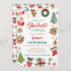 Célébrez le jalon spécial de votre petit-fils avec cette invitation festive d’hiver Noël 1er anniversaire. Doté d'éléments de vacances comme des biscuits de pain d'épice, des arbres de Noël, des ornements, des couronnes, des bas et du cacao chaud, ce design gai est parfait pour une fête d'anniversaire d'hiver. Personnalisez facilement avec le nom de votre enfant, la date de la fête, l’heure et les détails de la RSVP. Idéal pour une fête de premier anniversaire ou une fête de Noël hivernale, cette invitation apporte joie, chaleur et charme saisonnier à votre événement.