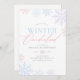 Des amis Invitations et la famille à la fête d'anniversaire de votre petit avec cette invitation thématique "Winter Onederland", avec des flocons de neige roses, violets et bleus.