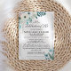 Invitation funéraire avec des roses blanches, des feuilles verts et un cadre doré. Pour plus de personnalisation, cliquez sur le lien "customiser plus" et utilisez notre outil de conception pour modifier ce modèle. Si vous avez besoin d'aide ou d'articles correspondants, veuillez me contacter.
