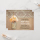 Dîner rustique mignon invitation avec pot de mason avec fleur d'hydrangée couleur orange pêche. Invitation parfait pour un dîner de répétition de pays avec dentelle vintage et des accents de bois en difficulté.