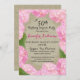 De jolies hydrangées roses sur burlap créent un cadre pour cette élégante invitation d'anniversaire de jardin. Customisez le texte pour n'importe quelle occasion.