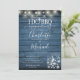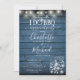 De jolis lampes à cordes et des jarres de maçon décorent vos détails spéciaux de fête de fiançailles, dans une élégante typographie sur un arrière - plan en bois rustique bleu. Conçu par Thisisnotme©