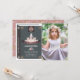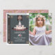 Cette mignonne invitation photo d'anniversaire de fille "une fois par jour" comporte un livre noir conçu avec un château. L'envers est orné d'un arrière - plan rose aux motifs floraux. Personnalisez-le selon vos besoins.