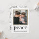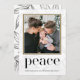 Belle feuille feuillage d'hiver feuillu imprimé en noir et blanc, avec la couleur dorée encadrée photo et la paix festive écrite en typographie noire. Cette collection de vacances de Noël comprend la coordination des accessoires d'expédition et des articles supplémentaires.