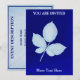 Cette invitation de mariage présente une impression cyano (bleue) d'un spray de feuilles de ronce, ou mûre (Rubus fruticosus). Personnalisez en ajoutant votre propre texte. Vous pouvez facilement changer la police et la couleur du texte. N'hésitez pas à nous demander de l'aide.