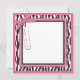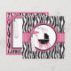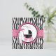 Style de boutique avec impression zèbre et pois avec des accents rose chaud et une carte de baby shower chariot de bébé.