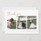 Ce carte de remerciements mariage dispose d'une police manuscrite pointue, de 3 emplacements photo et d'un design moderne minimaliste avec une police boho brûlée orange. Utilisez ces modèles pour modifier tout le libellé, la police, la couleur de police et la couleur de l'arrière - plan pour qu'ils correspondent à votre style d'événement. Modifiez facilement les photos sur le devant pour correspondre à votre événement spécial.