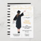 Invitations de Graduation Moderne pour le nouveau diplômé Médicale de votre famille. Dessine le dos d'une fille heureuse avec robe noire, casquette et diplôme et tenant un stéthoscope avec faux confettis d'or et un moderne noir et blanc rayé dos. Changez vos cheveux pour qu'ils correspondent à vos besoins, s'il vous plaît demandez-moi votre couleur de cheveux à tkatz@me.com. Idéal pour le lycée, infirmière, docteur, collège, école de droit, diplôme d'études supérieures, etc.