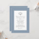 La conception de mariage élégante bleu poussiéreux présente une calligraphie moderne et un script en gris charbon disposés dans une belle bordure chic bleu poussiéreux. La bordure est accentuée d'une bordure blanche élégante et discrète.