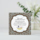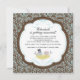 Commencez votre évènement par notre invitation à la douche nuptiale moderne et branchée, avec une mignonne paire d'inséparables habillés en tenue mariage dans un nid dressé sur un arrière - plan en feuilles damassées marron et turquoise. customisez notre invitation avec vos informations mariages et vous êtes tous prêts à partir.