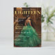 Vous voulez que votre fête ait l’impression d’être tout droit sortie d’une couverture de magazine? Cette invitation du dix-huitième anniversaire combine un élégant look émeraude avec un grand escalier doré en arrière-plan pour un design vraiment inoubliable. La photo en vedette n'est qu'un échantillon et peut facilement être remplacée par la vôtre, en gardant le style sophistiqué tout en le rendant unique à vous. Parfait pour les débuts de fêtes, quinceañeras, ou anniversaires jalons, cette disposition met en valeur le nom de l’honoré et comprend un espace pour les détails de l’événement, RSVP, et le code vestimentaire. Plus qu'une simple invitation, il ouvre la voie à une nuit d'élégance et de souvenirs durables.