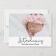 Personnalisez cette carte faire-part de naissance bébé avec le nom du bébé et 2 photos (une devant et une derrière). Customisez le texte, la date de naissance, les statistiques de naissance et signez les noms. Félicitations pour votre nouveau paquet de joie. Inclure une photo de votre nouveau-né petite fille. Avec des détails de coeur rose et un script moderne pour le mot "Introduce". Partagez votre enthousiasme avec votre famille et vos amis et envoyez vos remerciements en même temps avec des champs de message personnalisés.