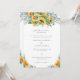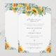 Invitación de boda cristiana sencilla y elegante escrita en español con flores girasoles rusticas, verdor y una cruz cristiana para una célébración religiosa en la iglesia. Incluye el versículo bíblico Efesios 5:31 (Y los dos serán una).