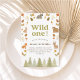 ¡Celebra el primer cumpleaños de tu pequeña con esta adorable invitación temática de bosques! Con encantadores animales del bosque como un oso, zorro, ciervo, conejito y mapache, rodeados de hongos, pinecones y árboles, este diseño "Wild One" es perfecto para un fiesta rústico o de inspiración natural. Personalice con el nombre de su hijo, los detalles del fiesta y la información de RSVP. Una elección dulce y elegante para el cumpleaños de un niño o un chica.