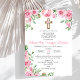 Haz que la Primera Comunión de tu hijo mer surtout con esta linda y elegante invitación. Adornada con rosas rosadas y una encantadora cruz, capture de la esencia de una céréonia religiosa católica. Faites de votre enfant la première communion spéciale avec cette invitation mignonne et élégante. Orné de roses roses et d'une charmante croix, il saisit l'essence d'une cérémonie religieuse catholique.