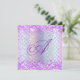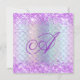 Une élégante monogrammée irisée couleurs arc-en-ciel brillent ombre avec fausse parties scintillant diamant mer sirène écailles d'anniversaire invitation pour elle. Parties scintillant violet brillant violet contre un rose girly, aqua, corail, vert mer, perwinkle violet irisé couleur arc-en-ciel image graphique. Le monogramme de calligraphie au centre peut être customisé. Tous les éléments de diamants brillants, chatoyants, brillants ou brillants de ce design moderne de sirène girly sont créés avec des éléments numériques imprimés.