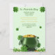 Invitation de St. Patrick's Day Irish Shamrock Party avec Gold Bowl et Cloverleaf. Le formulaire est prêt pour vous à customiser l'invitation avec vos propres détails.