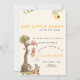 Célébrez l'arrivée imminente de votre "petit trésor" avec cette charmante invitation à la baby shower ! Dotée d'un thème forestier fantaisiste inspiré des personnages classiques de l'enfance, cette création présente une scène ludique avec des animaux, un arbre, un ballon et une ruche à miel. Les tons chauds et les détails charmants créent une esthétique douce et accueillante.