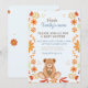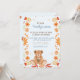 Cette invitation pour une baby shower de la collection "Bundle of Joy Essentials" présente un design charmant inspiré de l'automne. En son centre, un adorable ours en peluche tient un bouquet, entouré d'une bordure florale vibrante aux teintes chaudes d'orange, de jaune et de rouge. Le design allie charme et élégance, offrant un espace pour personnaliser les détails clés de l'événement tels que la date, l'heure, le lieu et la réponse. Idéale pour célébrer l'arrivée d'un nouveau bébé, cette invitation apporte chaleur et joie à votre rassemblement spécial.