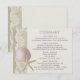 Dollar des sables et étoile de mer, Itinéraire sur le thème de la plage ou carte d'information avec un design dentelle ivoire vintage et toile de jute. Texte violet clair ou changez pour correspondre à vos couleurs de mariage.