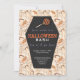 Hexagonal gris foncé forme cercueil et les bonbons et les cannes motif avec une sucrerie faisant une orange, pêche, noir et blanc moderne et simple Halloween bash invitation fête. Convient pour un truc drôle mignon ou traiter les fêtes d'Halloween.