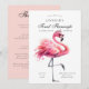 Célébrez la future mariée avec une soirée de bachelorette Final Flamingle et notre invitation itinérante amusante, mais élégante et classe, avec des illustrations d'aquarelle d'un flamant rose amusant dans une pose flirtante, portant une tiare et des lunettes de soleil. Passez le champagne, sortez le bling, les maillots de bain et les lunettes de soleil et passez un bon moment ! Simple et moderne, c'est la façon parfaite de lui donner une célébration à retenir pendant qu'elle passe de Mlle à Mme.