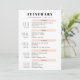 Inclure cet itinéraire avec votre invitation à votre prochaine escapade de 5 jours. Design dispose d'une police serif en gras qui dit "Itinéraire" avec tous les détails dans une police san serif ci-dessous. Les titres de la date sont mis en surbrillance avec une boîte rose vif.