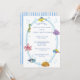 This adorable baby shower invitation features charming underwater creatures on the front, while the back showcases complementary blue watercolor stripes. The design incorporates a blend of serif and sans-serif typography for a modern and stylish look. To customize the invitation, simply click on "personalize this design" and enter your details. Zazzle will handle the rest. Additional matching items are also available.