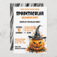 Préparez-vous à accueillir l'ultime bash d'Halloween avec cette Invitation de soirée Spooktacular d'Halloween ! Ce design vibrant et attrayant présente une police fantaisiste et audacieuse qui saisit l'essence d'Halloween. Au centre, une lanterne classique en jack-o’ portant un casquette de sorcière est assise sur des éclaboussures de peinture orange et noire, ajoutant une touche ludique mais éffrayante à l’invitation. Le texte de cette invitation est entièrement personnalisable, vous permettant de personnaliser chaque détail pour convenir à votre événement. Cette invitation allie l'imagerie traditionnelle d'Halloween avec des éléments graphiques modernes, ce qui en fait un lieu idéal pour toute personne souhaitant ajouter une touche personnelle à son événement. Que vous soyez l’hôte d’un rassemblement familial ou d’une soirée éffrayante, cette invitation personnalisable vous donnera le ton parfait pour votre fête d’Halloween.