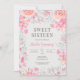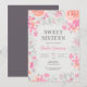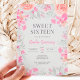 Joli jardin botanique fleuri pêche rose Sweet 16 anniversaire invitation avec peint à la main rose, pêche, vert et gris fleurs de jardin avec élégante douce verdure pastel sur pastel vert clair arrière - plan.