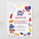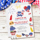 Invitation du barbecue de célébration du 4 juillet - facile à modifier le libellé pour inclure les avantages de la fête et toute information supplémentaire comme la nourriture soleil amusant ou bières et hamburgers; apporter un plat de côté, mousseux, chaise de jardin etc. Le design comprend ballons et feux d'artifice, barbecue, desserts et lunettes de soleil cool. Il a un thème patriotique de couleur rouge blanc et bleu avec beaucoup d'étoiles et de rayures.