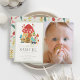 Cette invitation photo mignonne et moderne "vous en êtes-vous ?" pour le 1er/premier anniversaire d'enfant présente un gnome devant sa maison de champignons avec des champignons sur un arrière - plan crème encadré par une bordure vert clair. L'envers est orné d'un arrière - plan vert clair avec des motifs de champignons. Personnalisez-le selon vos besoins. Vous pouvez trouver des produits correspondants dans mon magasin.