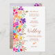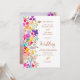 Un jardin de fleurs sauvages peintes à la main, moderne et délicate, dans les tons vifs, rose, rouge, bleu, jaune et vert, avec une police de caractères élégante pour célébrer votre mariage extérieur d'été dans le style. Ajoutez votre photo à l'arrière !