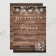 Une invitation rustique Quinceañera 15ème anniversaire avec de jolies lampes à cordes et des jarres en maçon avec typographie stylisée, sur un arrière - plan rustique en bois. Conçu par Thisisnotme©
