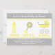 Une conception chérie pour une invitation de baby shower, cet invitation est parfaite pour une secousse, hochet et roule la douche orientée pour que la nouvelle maman soit. Les couleurs jaunes et grises ici sont parfaites pour une partie neutre de genre quand vous ne savez pas ce que sera encore le bébé.