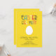 Invitation drôle pour chasse aux oeufs de Pâques avec oeuf blanc sur fond jaune.