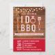 Ce I Do BBQ design rustique brun rouge dispose d'un arrière - plan en bois rustique avec des lampes à cordes et des graphiques grillés. Ce design est parfait pour des fêtes de fiançailles et des douches en couple pour barbecue.