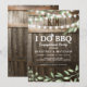 Cartes d'invitation de fiançailles couple Rustique "Je fais du BBQ" avec un fond de tonneau en bois de grange de campagne, guirlande lumineuse scintillante, feuillage botanique aquarelle, bague de fiançailles, votre monogramme et un modèle de célébration de douche de couple facile à personnaliser.