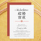 Voici une invitation pour barbecue nuptiale qui mêle fête fumée et élégance japonaise subtile 🔥 🎀 Conçu avec un design moderne propre, cet invitation présente des caractères de kanji gracieux pour "mariage eve", un arc floral rouge doux d’inspiration mizuhiki, et une calligraphie délicate qui dit "Je fais du barbecue". Il est parfait pour les couples qui aiment l'esthétique japonaise mais veulent garder les choses minimalistes et significatives. Que vous soyez à la recherche de yakitori grillés ou de burgers classiques, cette invitation donne un ton raffiné et réfléchi à votre célébration ! Associé à la tradition et à une touche de charbon de bois du Japon, Junko 🍢