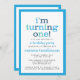 Invitation vos invités à fêter l'enfant d'un an avec ces invitations modernes et élégantes à la douche pour bébé, avec un design typographique multicolore amusant et une bordure bleue claire.
