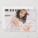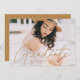 Invités Invitations pour célébrer la grade avec nos invitations élégantes à la remise des diplômes photo. Les invitations à l'obtention du diplôme présentent la photo du diplômé avec "Graduate" dans une superposition de script de calligraphie moderne or. Personnalisez le devant de l'invitation moderne en ajoutant le nom du diplômé, le nom de l'école et l'année de fin d'études. L'invitation s'inverse pour afficher les détails de votre fête de remise de diplômes et un motif géométrique pointillé en or et blanc tendance.