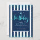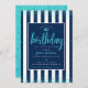 "Bon anniversaire". Envoyez ces points de confettis bleu parties scintillant étincelants, modernes, minuscules et brillants turquoise, et le script de typographie contre un arrière - plan rayé bleu marine et blanc, invitation personnalisée pour un événement à se souvenir. Personnalisez le texte personnalisé avec le nom de l’invité d’honneur, l’année d’anniversaire et les informations sur le lieu de la fête. Parfait pour les 40ème, 50ème, 60ème, "Sweet 16" ou tout autre âge jalon. Idéal pour la fashionista qui aime la parties scintillant moderne et glam et s'assure d'ajouter du plaisir élégant à sa fête spéciale! Des assiettes, serviettes et autres cadeaux d'anniversaire sont également disponibles dans cette collection tendance et spéciale. Il suffit de taper le nom de la fille d’anniversaire, l’année d’anniversaire et les informations sur le lieu de la fête et vous pouvez facilement personnaliser cette invitation d’anniversaire. S'il vous plaît, envoyez-moi un message avec toute question ou demande.