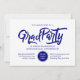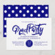 Il s'agit d'une carte d'invitation de la fête de remise de diplômes avec un design de typographie de texte avec un support pois en bleu marine sur blanc. Vous pouvez modifier la couleur en modifiant la couleur arrière - plan.