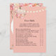 Profitez de ce jeu élégant de baby shower pour fille avec un thème floral automnal, « Over or Under ». Guirlande de lumières sur le devant avec une petite citrouille et des fleurs sous la citrouille. Fleurs roses, coraux et jaunes sur fond rose blush. Des modèles sont fournis au dos.