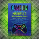 Votre joueur s'est nivelé ! Ce design d'anniversaire de jeu vidéo a un style numérique et un contrôleur de console pour préparer la scène pour une grande fête. Les couleurs bleu marine et arc-en-ciel et les polices audacieuses sont parfaites pour les joueurs de tout âge. Téléchargez votre copie numérique dès aujourd'hui pour appuyer sur start on the best anniversaire ever!