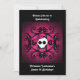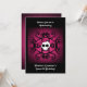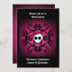 Super mignon crâne Sweet 16 invitations de fête avec un motif damassé en noir sur un arrière - plan de rayures fuchsia. Ajoutez vos détails.