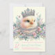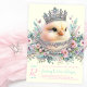 Jolie invitation au baby shower de poussins avec de belles petites poussins ornées de bijoux et de tiare sur un arrière - plan pastel à fleurs. Cette invitation de baby shower fille est facilement customisée avec votre texte et vous pouvez changer la couleur arrière - plan sur l'avant et l'arrière et la couleur du texte.