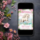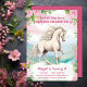 Invitation Joli Cheval blanc et Fleurs roses Anniversaire